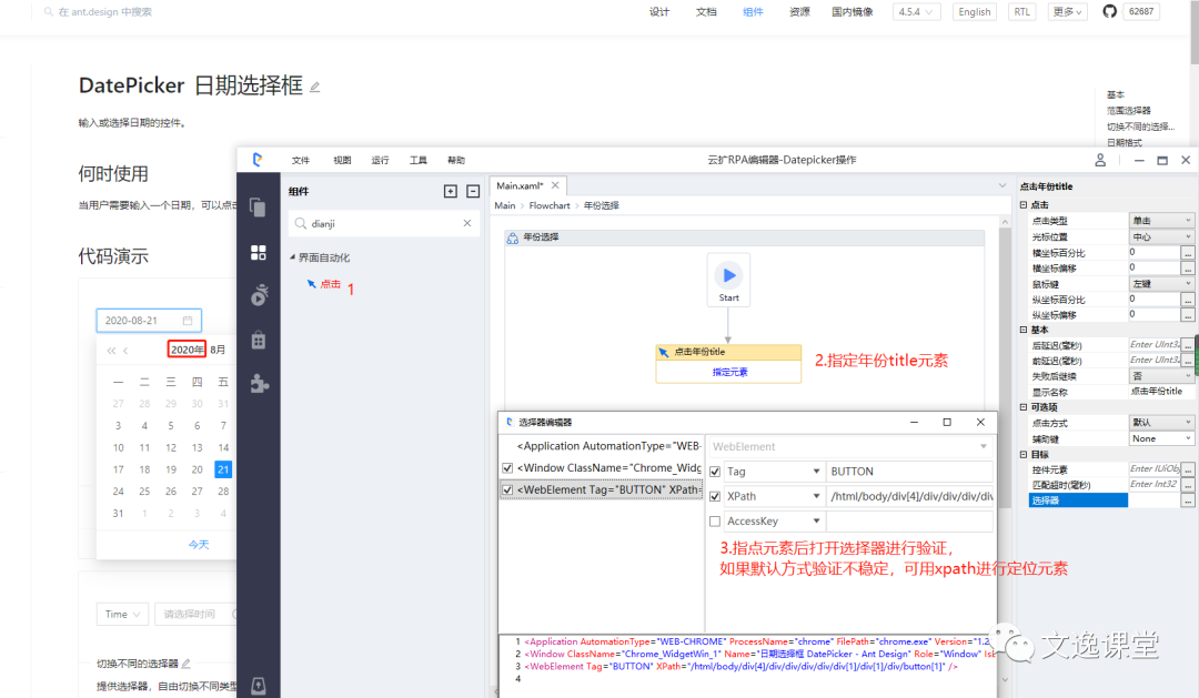 本文主要针对那些不支持直接输入,必须通过点击才能操作的日期选择框。本文以 AntDesign 基础日期选择框为例,选择指定日期。
